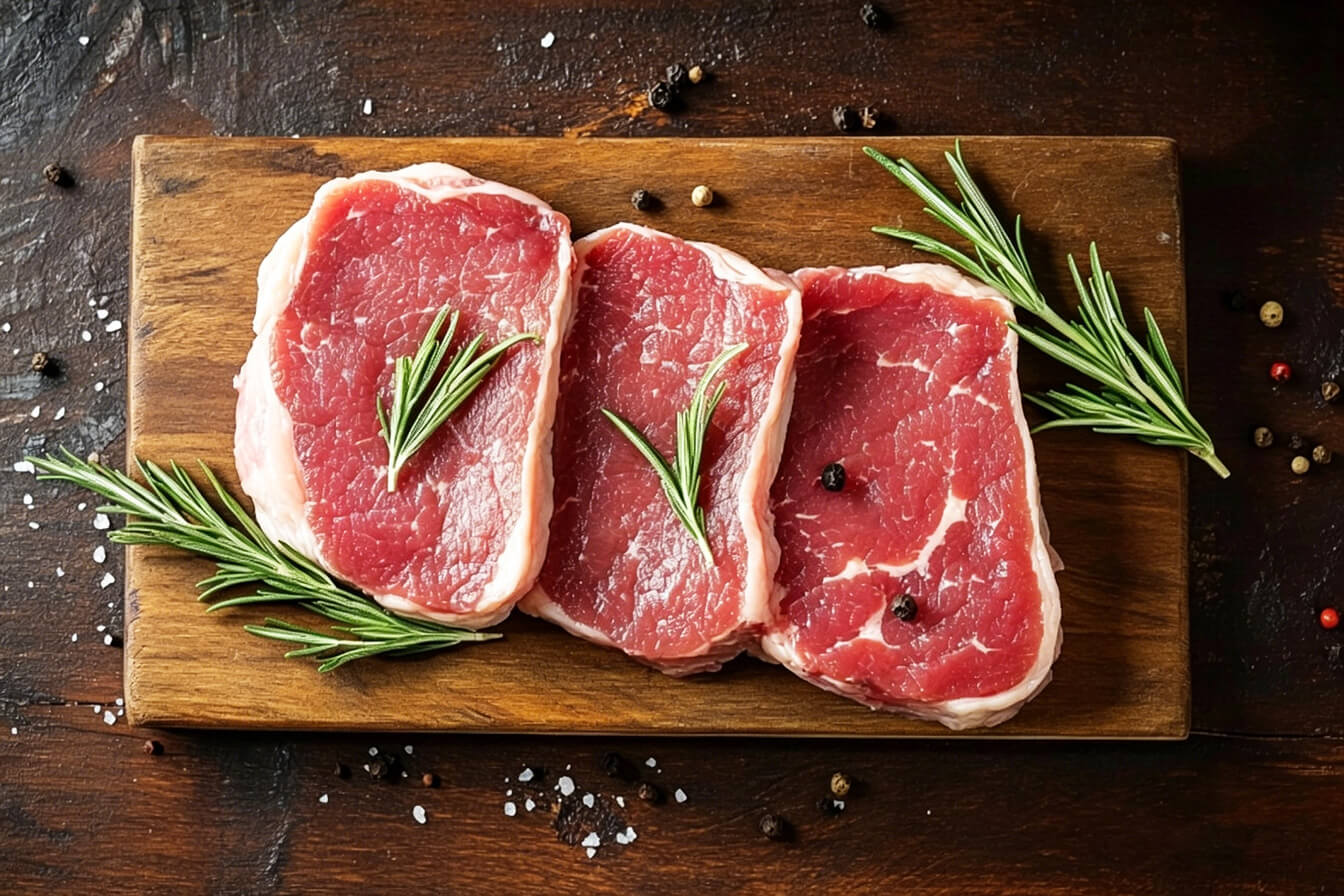 Chilled/Frozen portioned meats (pork, beef, lamb), sliced beef/lamb rolls, seasoned steaks/cutlets, various meatball products, pre-fried/pre-cooked processed meat products, and whole poultry/poultry cuts.