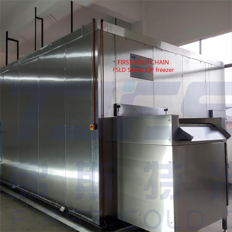 流態化速凍機 很適合蔬菜、水果如豌豆、甜玉米、胡蘿蔔或丁、花椰菜片之類的冷凍設備,對蝦、海鮮也很有效。
