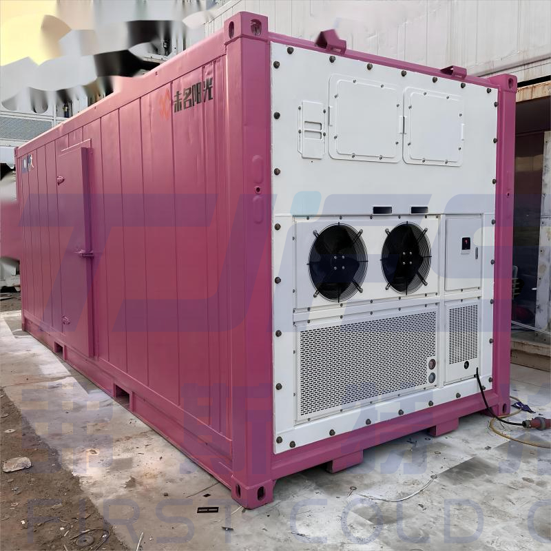 一種是20英尺,另一種是40英尺,由30馬力兩級壓縮機組(30馬力低溫螺桿壓縮機組)和75馬力低低溫螺桿壓縮機組組裝而成,