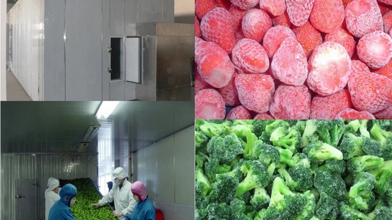 IQF 使用非常低的溫度并快速冷凍食物。這有助於保持食物的形狀和味道。冷庫冷凍需要較高的溫度並需要更多的時間。您可以單次冷凍大量食物,但它們可能會粘在一起或失去一些質量。