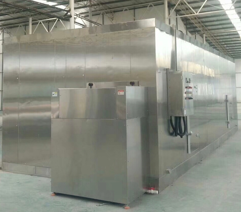 2、深凍階段:食品在不銹鋼網帶上移動,食品層隨著氣流的增大而鬆動
